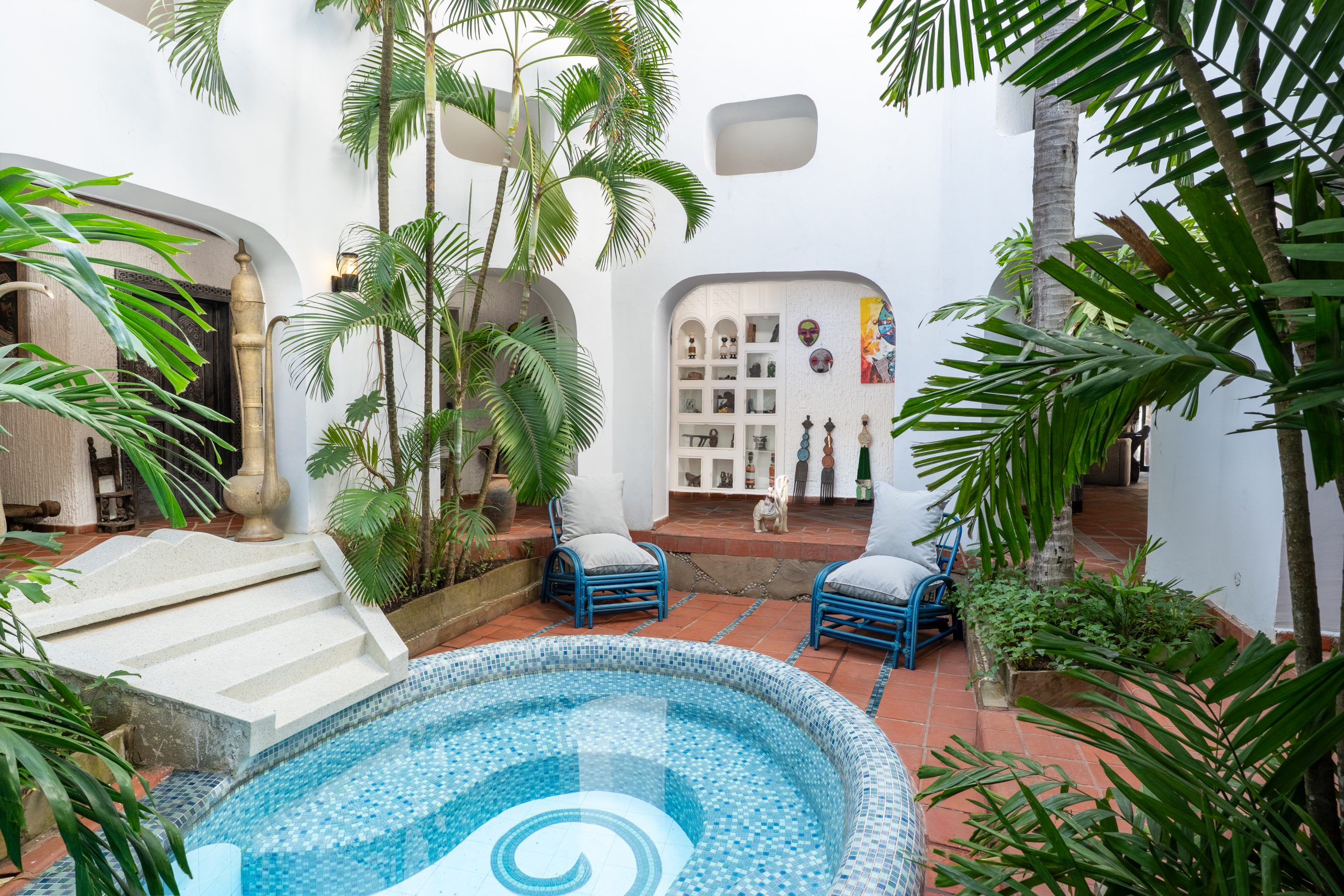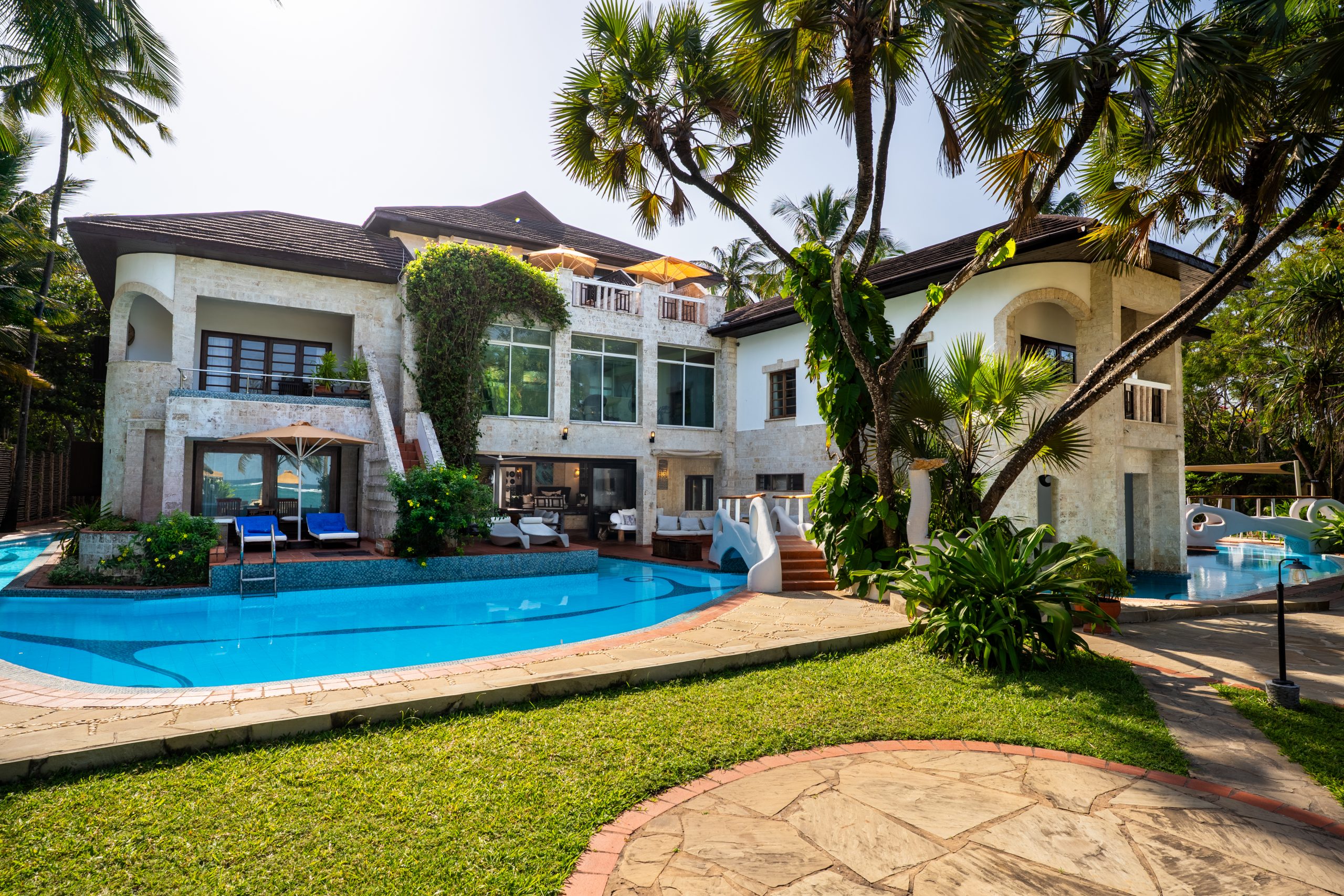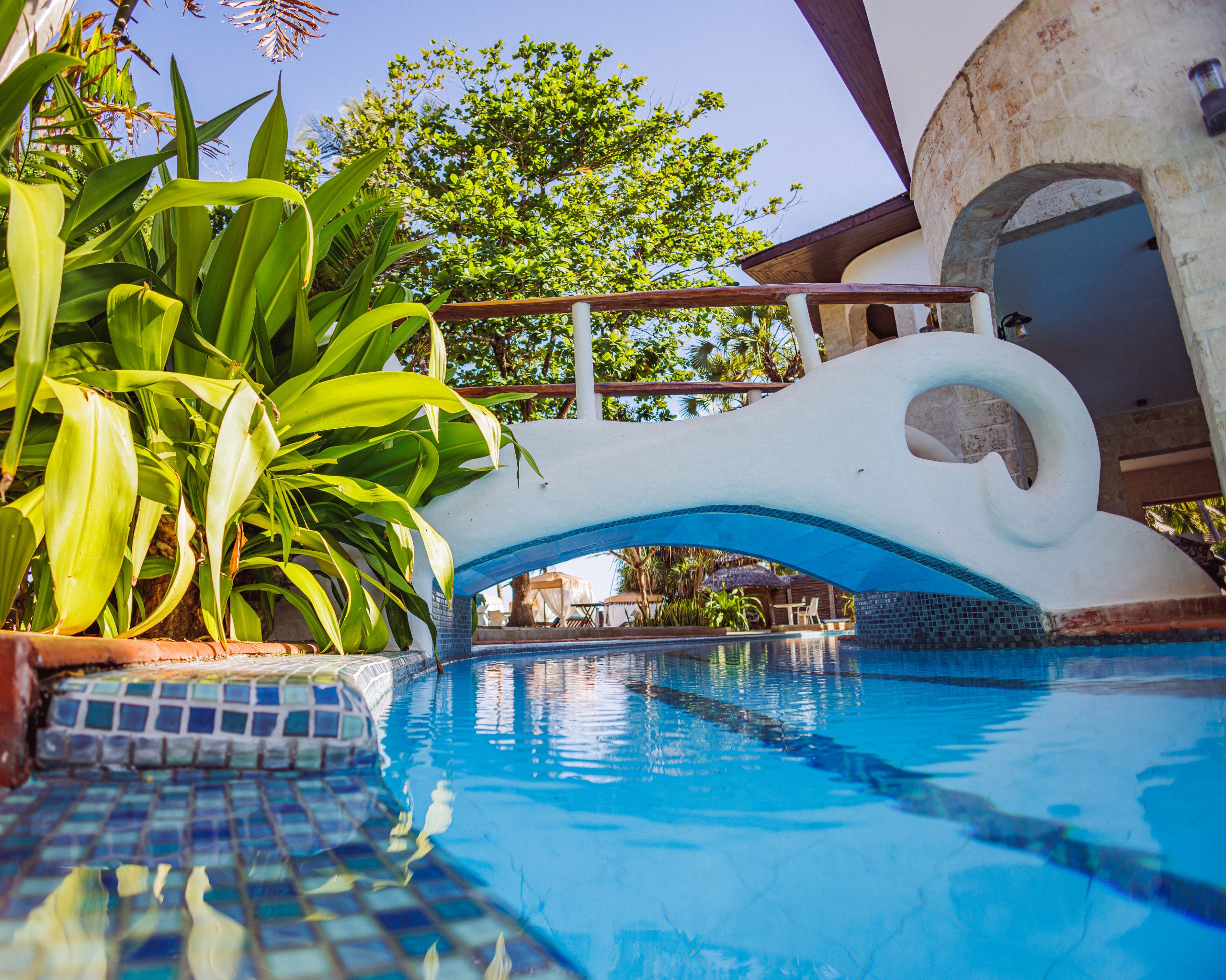Experience intricately detailed, 118m long, moat-like meandering swimming pool runs through and encompasses the main house. It features an open-air Ocean view Jacuzzi overlooking the beach, water bar stools next to The Maji Moto Bar and comfortable water seating. The swimming pool is open 24/7 but we do ask guests to respect a quiet time. There are two open air shower areas are available by the pool.